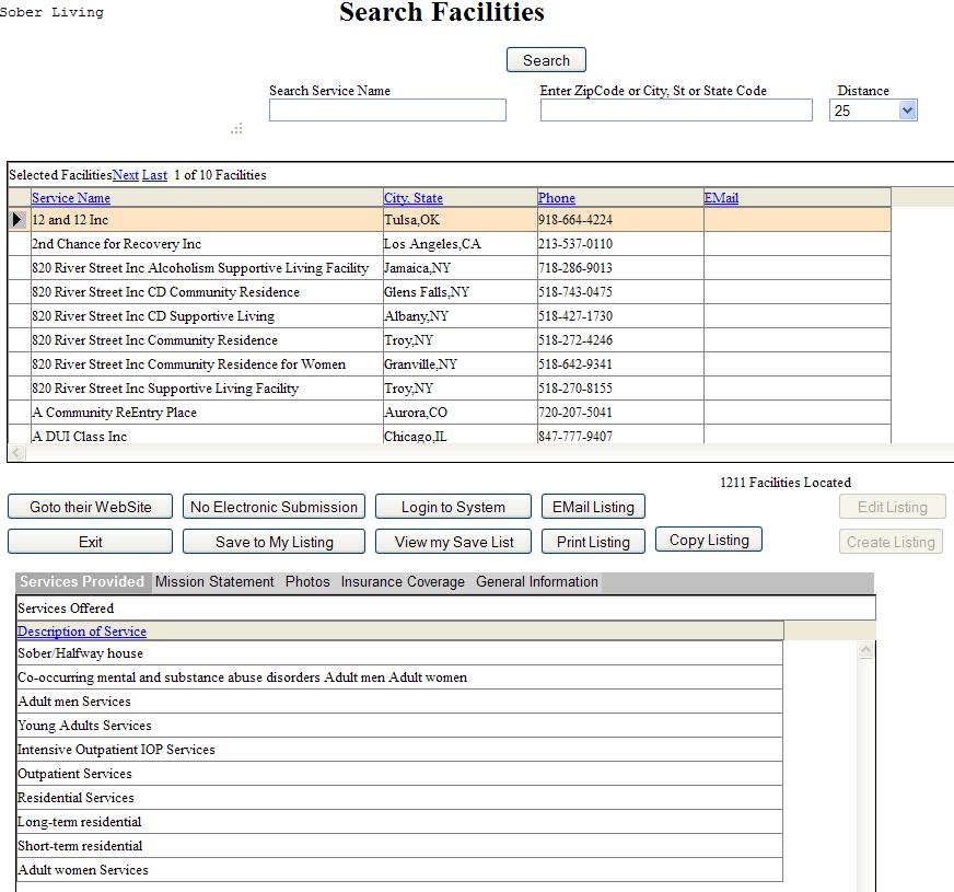 1. Sober living. Is a listing of Full – ¾ and ½ locations.  Also you have a option of Selecting ‘Special Services’ to select